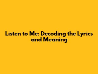 Listen To Me: Decoding The Lyrics And Meaning