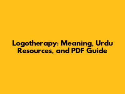 Logotherapy: Meaning, Urdu Resources, And PDF Guide