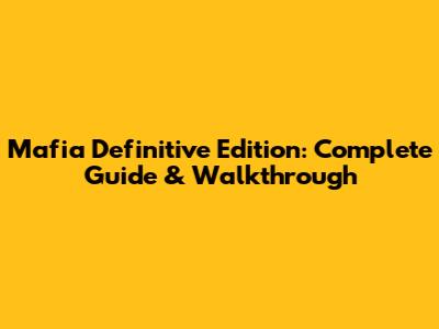 Mafia Definitive Edition: Complete Guide & Walkthrough