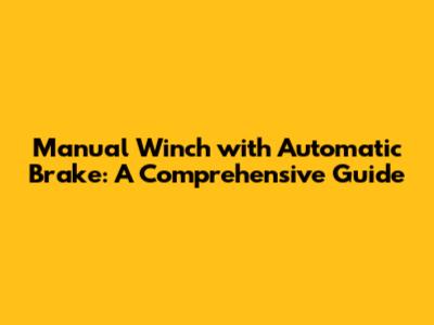 Manual Winch With Automatic Brake: A Comprehensive Guide