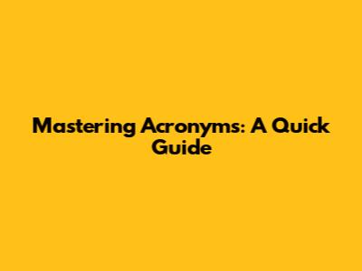 Mastering Acronyms: A Quick Guide