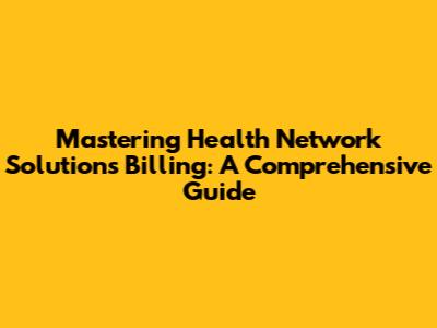 Mastering Health Network Solutions Billing: A Comprehensive Guide
