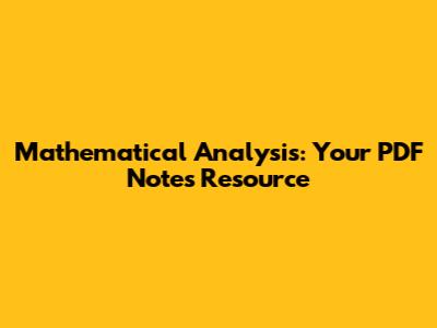 Mathematical Analysis: Your PDF Notes Resource