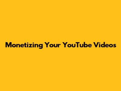 Monetizing Your YouTube Videos