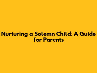 Nurturing A Solemn Child: A Guide For Parents