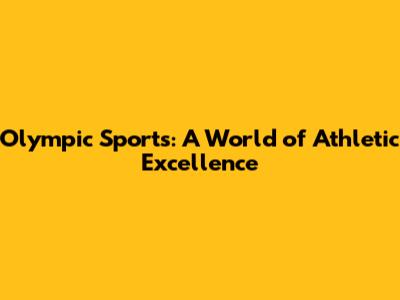 Olympic Sports: A World Of Athletic Excellence