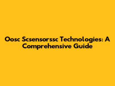 Oosc Scsensorssc Technologies: A Comprehensive Guide