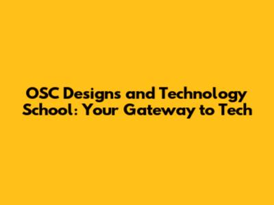OSC Designs And Technology School: Your Gateway To Tech