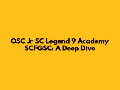 Let's get right into it, guys! Today, we're breaking down everything you need to know about OSC Jr SC Legend 9 Academy SCFGSC. This isn't just some random string of letters; it represents a significant program in the world of youth soccer. We'll explore what each part of this acronym stands for, what the academy aims to achieve, and why it's important for aspiring young soccer players. Whether you're a parent, a player, or just a soccer enthusiast, stick around—you're about to get the lowdown on this noteworthy academy.