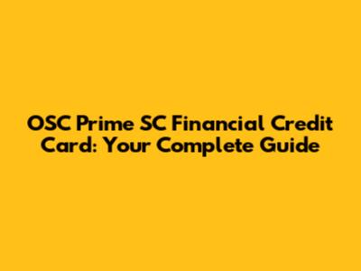 OSC Prime SC Financial Credit Card: Your Complete Guide