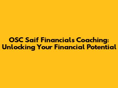 OSC Saif Financials Coaching: Your Path To Financial Freedom