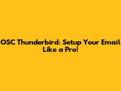 OSC Thunderbird: Setup Your Email Like A Pro!