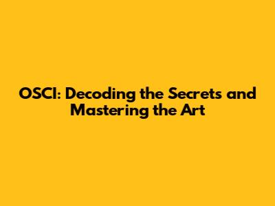 OSCI: Decoding The Secrets And Mastering The Art