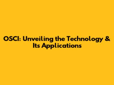 OSCI: Unveiling The Technology & Its Applications