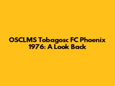 OSCLMS Tobagosc FC Phoenix 1976: A Look Back