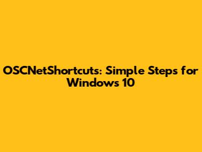 OSCNetShortcuts: Simple Steps For Windows 10