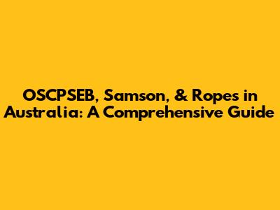 OSCPSEB, Samson, & Ropes In Australia: A Comprehensive Guide