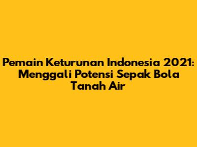 Pemain keturunan Indonesia pada tahun 2021 telah memberikan warna tersendiri dalam dunia sepak bola tanah air. Mereka tidak hanya meningkatkan kualitas permainan timnas, tetapi juga memberikan harapan baru bagi perkembangan sepak bola Indonesia. Dengan talenta yang luar biasa, semangat juang yang tinggi, dan dukungan dari berbagai pihak, mereka diharapkan dapat membawa sepak bola Indonesia meraih prestasi yang lebih gemilang di masa depan. Mari kita dukung terus perjuangan mereka, dan mari kita berharap agar sepak bola Indonesia semakin maju dan berkembang.