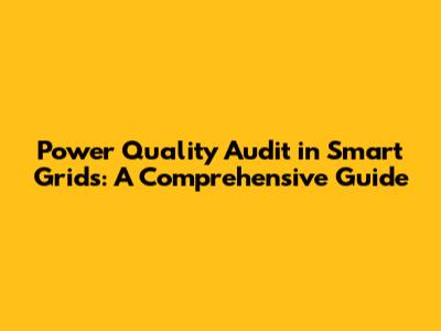 Power Quality Audit In Smart Grids: A Comprehensive Guide