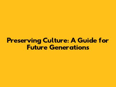Preserving Culture: A Guide For Future Generations