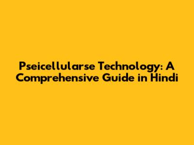 Pseicellularse Technology: A Comprehensive Guide In Hindi
