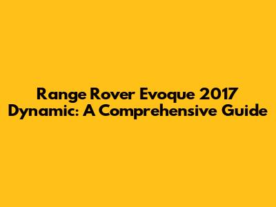 Range Rover Evoque 2017 Dynamic: A Comprehensive Guide