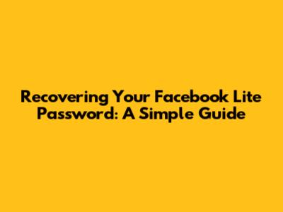 Recovering Your Facebook Lite Password: A Simple Guide