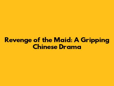 Revenge Of The Maid: A Gripping Chinese Drama