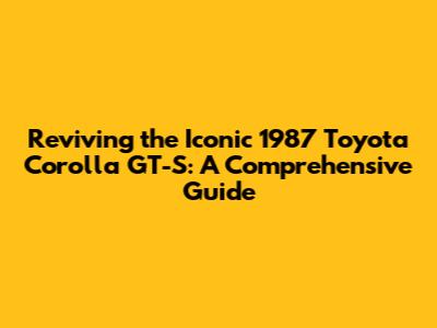 Reviving The Iconic 1987 Toyota Corolla GT-S: A Comprehensive Guide