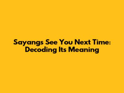 Sayang's 'See You Next Time': Exploring Its Meaning