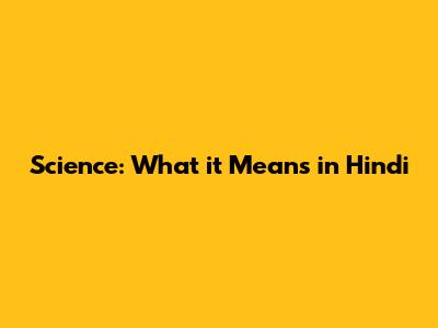 Science: What It Means In Hindi