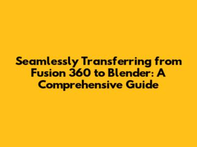 Seamlessly Transferring From Fusion 360 To Blender: A Comprehensive Guide