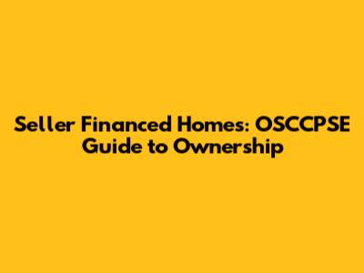 Seller Financed Homes: OSCCPSE Guide To Ownership