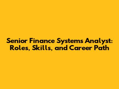 Senior Finance Systems Analyst: Roles, Skills, And Career Path