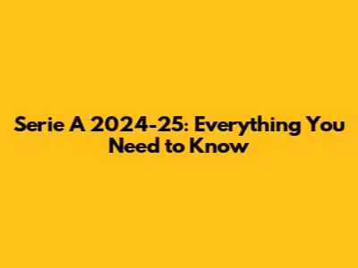 Serie A 2024-25: What You Need To Know