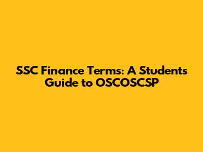 SSC Finance Terms: A Student's Guide To OSCOSCSP