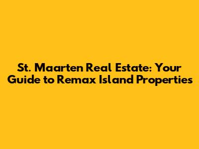 St. Maarten Real Estate: Your Guide To Remax Island Properties