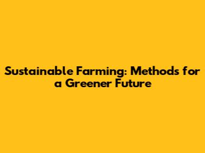 Sustainable Farming: Methods For A Greener Future