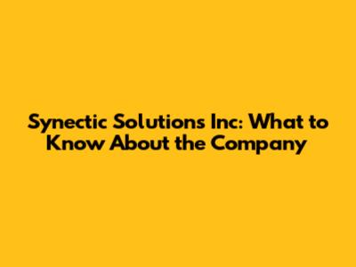Synectic Solutions: What To Know About The Company