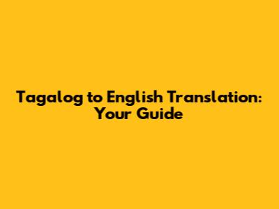 Tagalog To English Translation: Your Guide