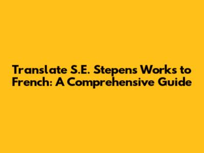 Translate S.E. Stepen's Works To French: A Comprehensive Guide