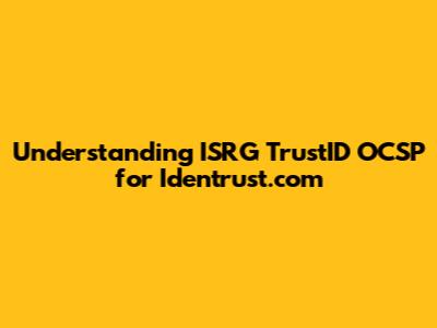 Identrust.com is a Certificate Authority (CA) that provides digital certificates and identity solutions. It's one of the older CAs around, and it plays a significant role in the digital certificate ecosystem. Now, how does ISRG TrustID's OCSP interact with Identrust.com? Well, when a certificate issued by Identrust.com is used on a website, browsers might check the OCSP responder operated by ISRG TrustID to verify the certificate's status. This happens because Identrust.com might have cross-signed certificates with ISRG, meaning that ISRG TrustID vouches for the validity of Identrust.com's certificates.