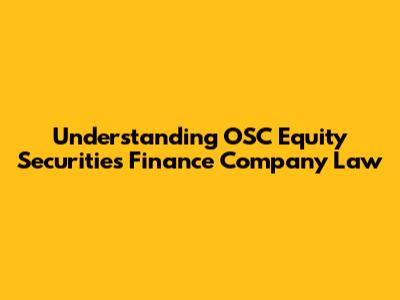 Understanding OSC Equity Securities Finance Company Law