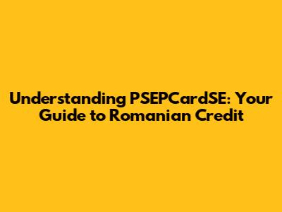 Hey guys! Ever heard of PSEPCardSE and how it relates to getting credit in Romania? If you're navigating the financial landscape of Romania, or you're thinking about it, understanding PSEPCardSE is super important. This guide will break down everything you need to know about PSEPCardSE, its role in the credit system, and how it impacts your chances of securing a loan or credit in Romania. Let's dive in and make sure you're well-equipped to handle the Romanian credit scene!