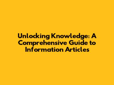 Unlocking Knowledge: A Comprehensive Guide To Information Articles