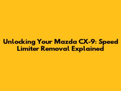 Unlocking Your Mazda CX-9: Speed Limiter Removal Explained