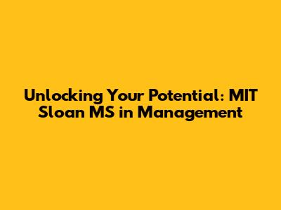 Unlocking Your Potential: MIT Sloan MS In Management