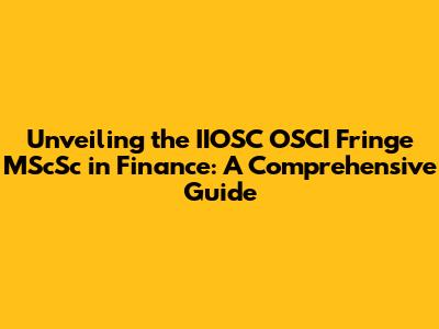 Unveiling The IIOSC OSCI Fringe MScSc In Finance: A Comprehensive Guide