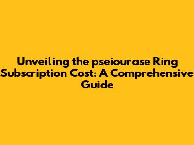 Unveiling The Pseiourase Ring Subscription Cost: A Comprehensive Guide