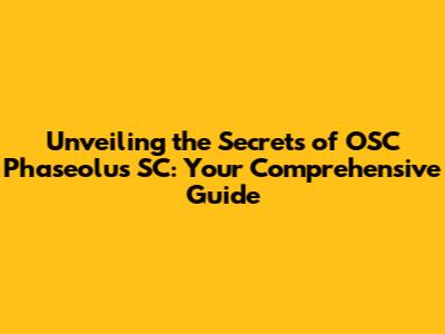 Unveiling The Secrets Of OSC Phaseolus SC: Your Comprehensive Guide